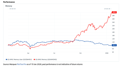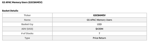 Chan's desk created a basket of Asian consumer electronics companies, where profit margins or volumes are likely to be impacted by soaring memory prices. That basket is GS APAC Memory Users (GSCBAMEV).