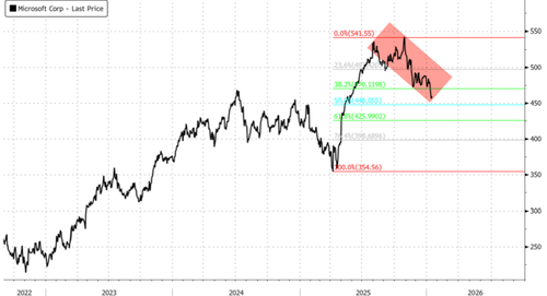 Microsoft shares are down 16% from the mid-December peak and remain unable to reclaim the $500 level. The key question for traders is whether the pullback presents a buy-the-dip opportunity, as several positive AI tailwinds have emerged in recent weeks, most notably from the world's leading memory suppliers, which reinforce the AI infrastructure cycle and downstream demand visibility for hyperscalers like Microsoft.