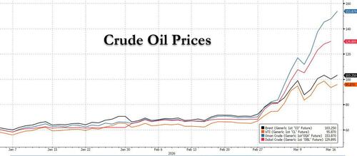 That said, JPMorgan warns that if the Strait does not reopen, this divergence is unlikely to persist, and Brent and WTI will ultimately reprice higher as Atlantic basin inventories are drawn down and the global market is forced to clear at a materially tighter supply level.