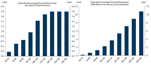 Exhibit 5: We Estimate Non-Linear Demand Destruction as a Function of Oil Prices Based on the 2022 Oil Market Shock and Our Own Modeling