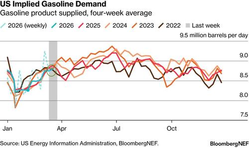 No signs of gasoline demand destruction so far. Finished motor gasoline product supplied came in at 8.9 million barrels per day for the EIA week, a week-on-week increase of 196,000 barrels per day.