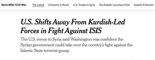 Even the NY Times admits the truth in its Tuesday headline: U.S. Shifts Away From Kurdish-Led Forces in Fight Against ISIS - and describes: