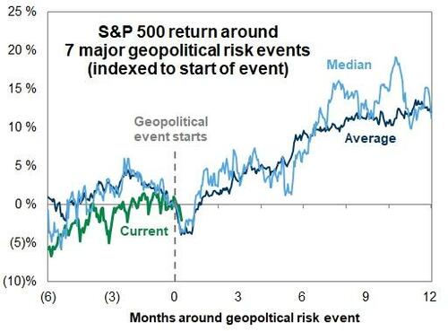 The historical impact of geopolitical risk shocks on Equity prices has typically been short lived...