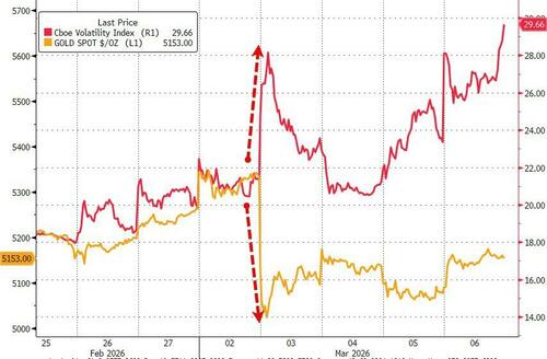 Following the military operations in the Middle East last weekend the S&P has sold off just 2%, but as we noted yesterday, that relative calm belies and undercurrent of chaos and panic.