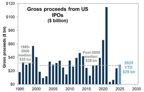 After several years of low issuance, IPOs saw a resurgence this year with a total of $29bn in proceeds raised across 56 deals. Worth noting this is still well below 2021’s peak levels...