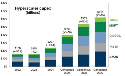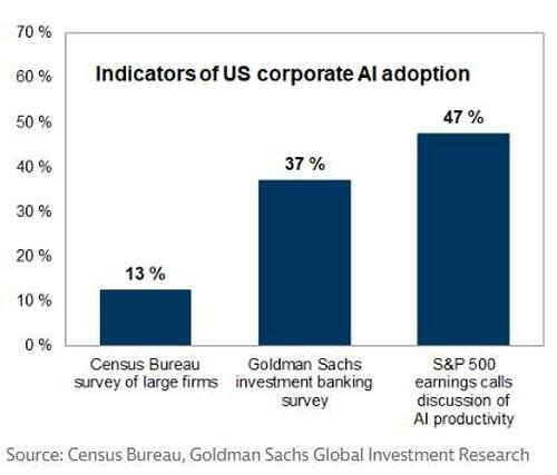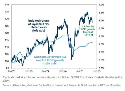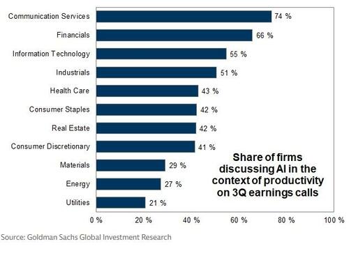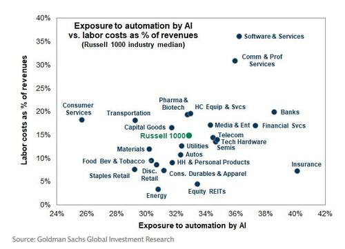 And finally, his favorite trade for 2026 is getting long some of the more under the radar AI productivity beneficiaries. Our US AI Productivity basket (GSXUPROD) is composed of non-Tech and non-AI companies that have mentioned specific plans to implement AI into their workflows, allowing them to reduce costs and improve margins, across: banks, retailers, transportation, HC services and the restaurant industry.