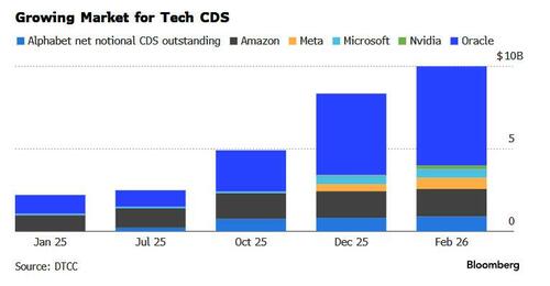 That fear is breathing new life into the market for credit derivatives, where banks, investors and others can protect themselves against borrowers larding on too much debt and becoming less able to pay their obligations. Credit derivatives tied to single companies didn’t exist on many high-grade Big Tech issuers a year ago, and are now some of the most actively traded US contracts in the market outside of the financial sector, according to Depository Trust & Clearing Corp.