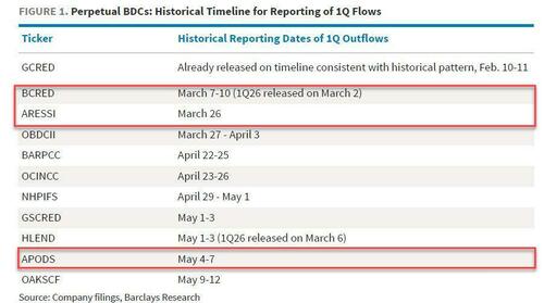 Of course, it's not just Ares: with the biggest names in the industry already gating investors (boxed in red below), here is a chronological list of which funds will announce next they have suspended redemptions.
