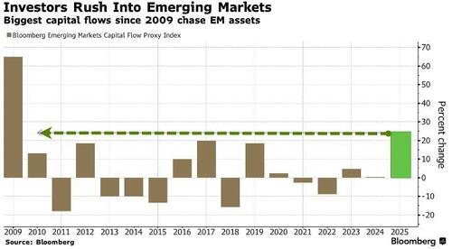 Emerging-market assets posted an across-the-board rally this year that few anticipated in the wake of US tariff shocks and a slowing Chinese economy with the biggest capital inflows since 2009...
