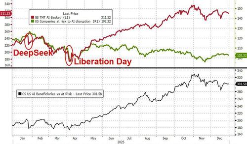 Of course, one cannot discuss 2025 without mentioning AI front-and-center as it massively outperformed on the year (despite treading water for the last two months)...
