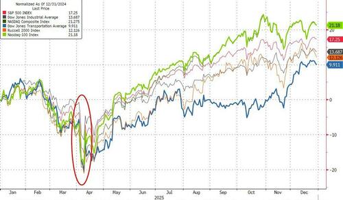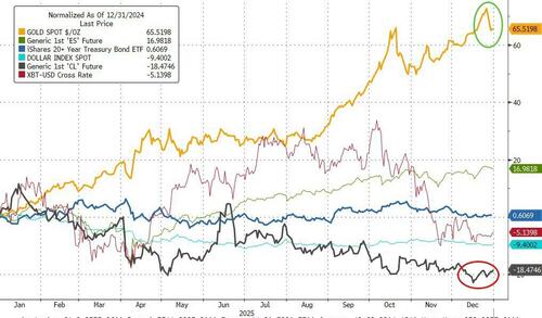 But, despite the big gains for NVDA and so on, precious metals were the year's biggest winner as crude lagged badly along with the dollar...