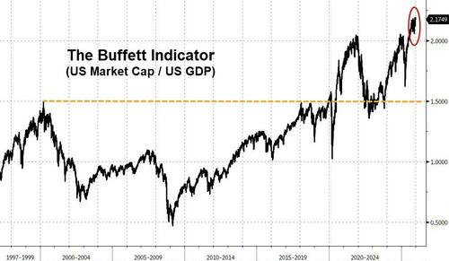 Dominic Wilson, however, points out that investors are prepaying for the productivity transformation 'promise' that comes with the AI investment cycle. Stock valuations by one measure are already above those of the 1920s and nearly at the peak we saw in the late-1990s (see final chart below).