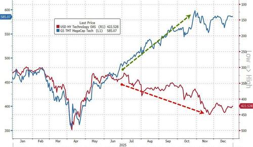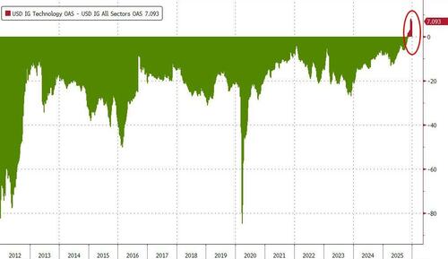 This chart remains one of our faves... as Tech credit now trades wider than the broad credit market for the first time ever...