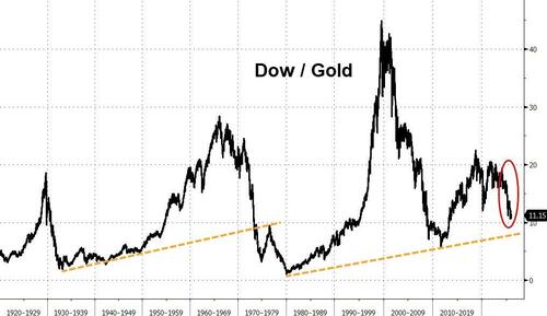 Gold has soared relative to the stock market (a year ago, it took 17 ounces of Gold to 'buy' The Dow; today it only takes 11 ounces)...