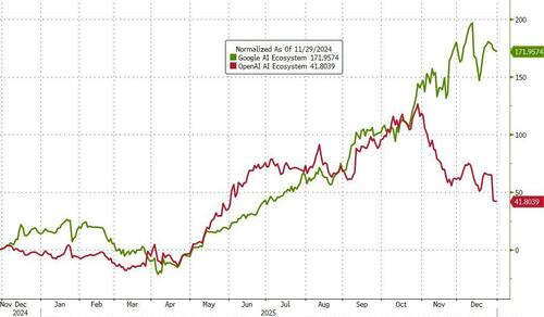 The stalling of the AI trade appears to represent a split in the AI ecosystem between the Google (TPU) ecosystem and OpenAI (GPU) ecosystem...