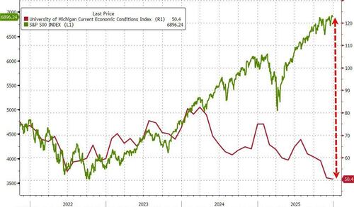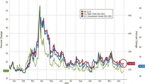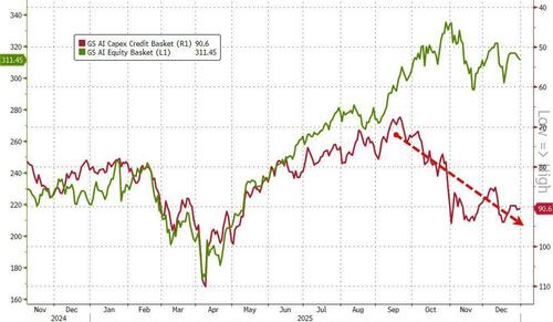 While equity risk expectations have fallen back to multi-year lows, US credit risk expectations remain elevated (thanks to AI supply), but off the recent wides...