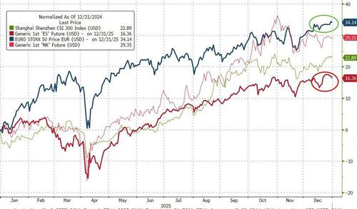 As Bloomberg's Breandan Fagan notes, at first glance, 2025 looked like another equity-led cycle.