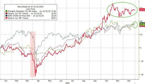 Everything from stocks to crypto to commodities experienced a rollercoaster ride that amounted to what felt like an especially volatile year... but by the end of the year, expectations for volatility had collapsed to calmness as DeepSeek, Liberation Day, trade tantrums, and various geopolitical crisis moments all faded into the background...