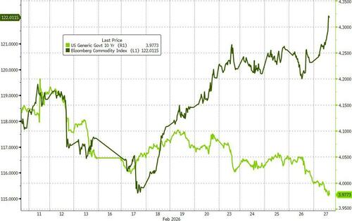 It is ironic to see the same breadth in commodities/cyclicals ie copper, energy and industrial metals bid, while rates compress.