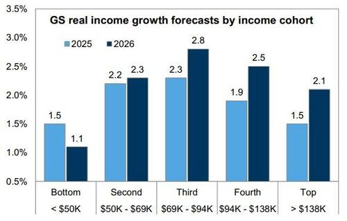 Our economists expect strong and accelerating real income growth for the middle income consumer in 2026. They believe slow job growth and elevated inflation have weighed on consumer income growth in Q4, but expect a reacceleration in early 2026 as a result of a diminishing inflation impulse from tariffs, tax cuts passed in the One Big Beautiful Bill Act, and a stabilization of the labor market. They forecast a particularly strong fiscal tailwind to income growth for the middle income consumer. The lowest income households will likely experience a deceleration in income growth due to SNAP and Medicaid cuts.