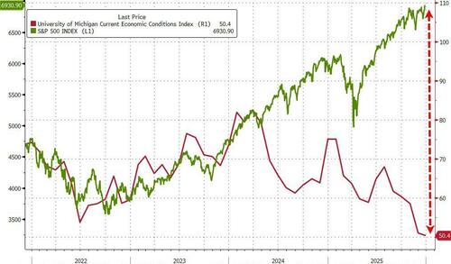 And as Goldman's Chris Hussey notes, as a result of the disconnect between actual consumer activity and the surveys, investors are understandably concerned about the durability of consumer activity in the year ahead that is admittedly filled with stimulus (for some).