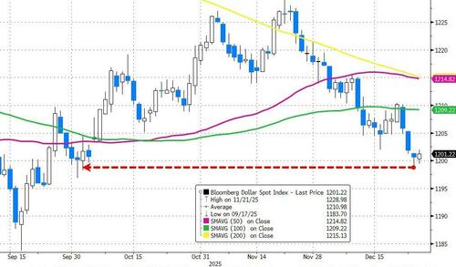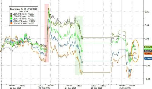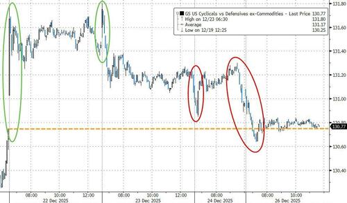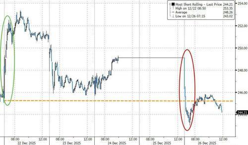 Boxing Day brought its usual triumvirate of exhaustion, indigestion, and low-liquidity price action for markets as stocks ended broadly unchanged today (Small Caps dumped). On the week, Small Caps ended unchanged while the rest of the US Majors managed solid gains around 1-1.5%...