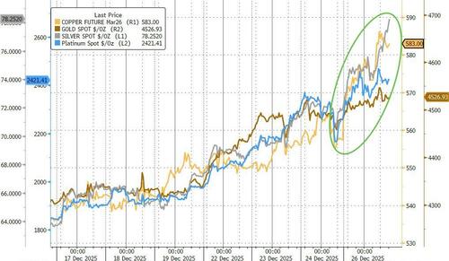 But the week's biggest news makers were the precious (and industrial) metals with copper, gold ($4550), silver ($78.50), and platinum ($2470) all soaring to new record highs.