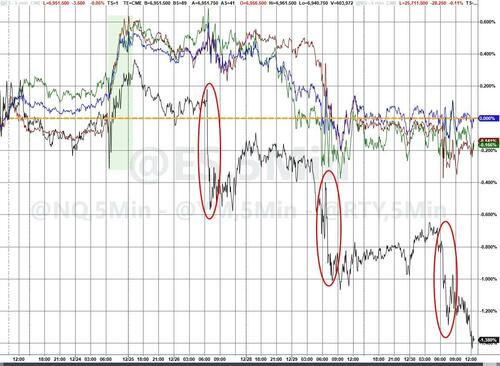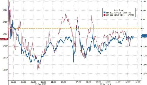 Markets chopped around today (with no reaction to Case-Shiller home prices or FOMC Minutes) but ended going nowhere with the S&P 500 clinging to unchanged for the 'Santa Claus' rally so far (while Small Caps are lagging, being sold at the cash open each day)...