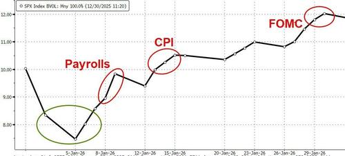 Finally, while the next few days are expected to see volatility collapse, the new year brings fresh 'catalysts' that the options market is already bracing for...