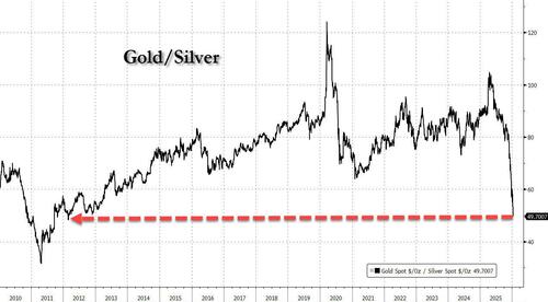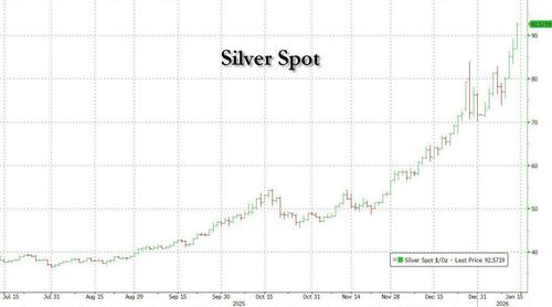 As tech sold off, metals continued their melt up to record highs (copper, tin, etc), while silver rose another 5% to trade above $92...