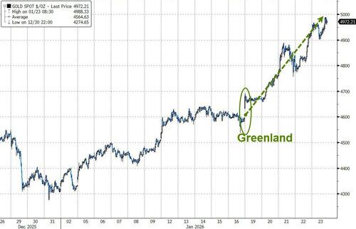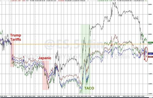 Put all that together and we ended the week with stocks lower, vol higher, the dollar crashing, precious metals exploding to new record highs, crypto ugly (despite a rebound today), crude up bigly (and NatGas exploding), and Treasury yields higher (but not as high as JGBs).