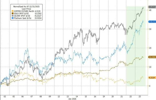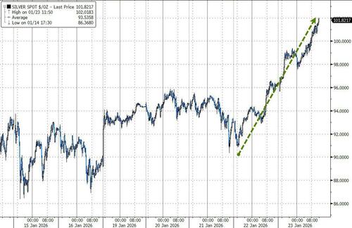 With silver topping $100 (hitting $102 at its peak) for the first time amid massive Chinese demand and deserving its own chart in today's EOD wrap (Silver is up 8 of the last 9 weeks)...