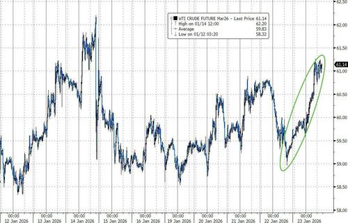 Crude prices were up large on the week amid Iran tensions (trumping the optics of easing tensions with Ukraine/Russia)...