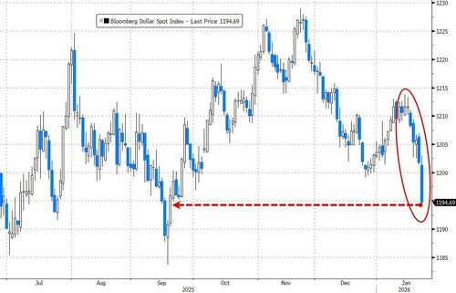 The dollar was clubbed like a baby seal today, suffering its worst day since August (and worst week since July) as the Dollar Index tumbled to its weakest since August...