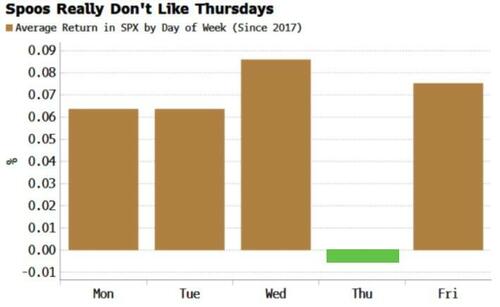 Finally, forget Mondays, it's Thursdays that you shouldn't like. Since 2017, it’s the only day that the S&P 500 is on average down.