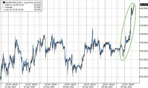 But, it was Silver that really ripped, surging above $60 - a new record high...