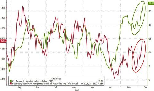 Nomura's Charlie McElligott notes that Kevin Hassett is of course viewed as POTUS “Rubber Stamp” on pro-growth ”Run-It-Hot” (yet still advocating “Weak Dollar”)–policy, alongside OBBB fiscal stim coming online and a recent broadening-out of Corp Earnings and Rev growth “Upside Surprises” versus estimates… where said aggregated tailwinds and “loose FCI” then of course risks embedding “Sticky Higher” inflation risks (Gold - not Bonds / Duration - as your Equities hedge when inflation > 3.50)... hence, removing that previously “deeper” Fed cuts path.
