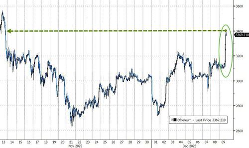 Ethereum soared over 7%, back up near $3400 and firmly rejecting $3000...