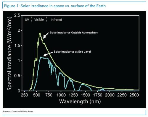 - Energy – at the right orbit such as in dawn-dusk SSO (sun-synchronous orbit), solar panels can harness the sun’s free power 24/7 and importantly, garner 40% higher intensity than on the Earth’s surface due to a lack of an atmosphere filtering/scattering sunlight. As such, operators can generate up to 6-8x more energy in orbit (leveraging continuous availability + greater irradiance) and avoid dealing with expensive/complex power grids terrestrially and also eliminate battery backups.