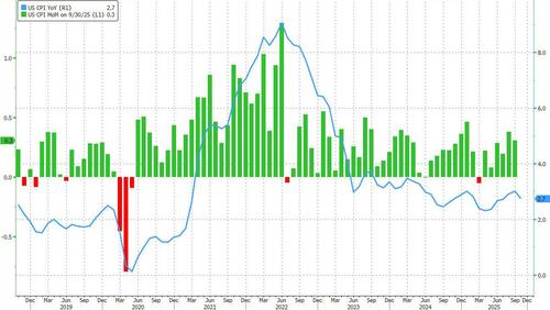 Goldman's forecast (0.35% core/0.37% headline MoM; 2.78% YoY core/2.74% headline) reflects a 0.17% boost from two channels related to missed or delayed data collection as a result of the government shutdown.