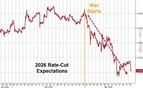 Rate-cut expectations for 2026 have collapsed since the last FOMC meeting (most notably since the war began) with less than one full cut now priced in...