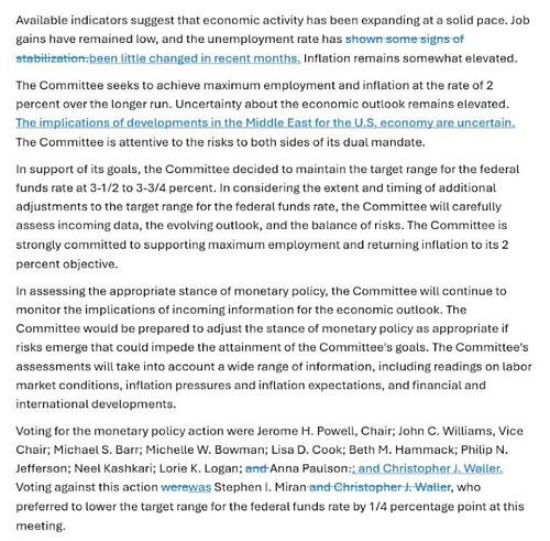 ...and brief discussion or Iran war ("implications of developments in the Middle East for the U.S. economy are uncertain")