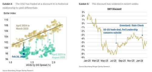 - Market Implications: USD MS economists expect that 1) the current tariff structure will move to different legal authority and largely remain in place, and 2) refunds will be limited in size (assume $85bn as the midpoint of our estimated range of outcomes). Reduced latitude from the US administration to use immediate tariff authority as a tool of foreign policy may at the margin diminish the USD-negative risk premium associated with investor caution around maintaining US currency exposure. However, offsetting factors are likely to maintain (or even widen) this USD-negative risk premium, including geopolitical uncertainty and questions around US currency policy. Additionally, the mechanical positive effect on global growth (as tariffs using different authorities take time to be implemented, and may be implemented at lower levels) will likely boost global growth expectations, further weighing on the USD.