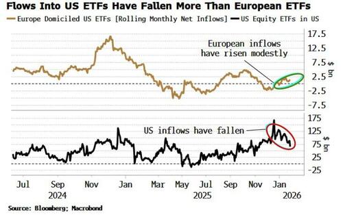 For all the European threats of capital withdrawal from the US in the wake of President Trump’s efforts to annex Greenland, there has been little sign of it, at least in ETF flows.