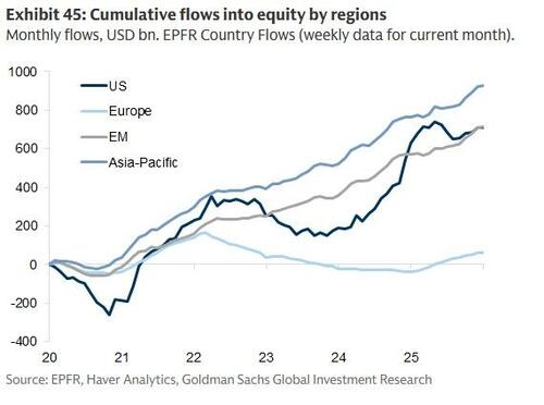 Despite H1 European outperformance (German fiscal boost, European defense, banks) European inflows are still materially lagging...