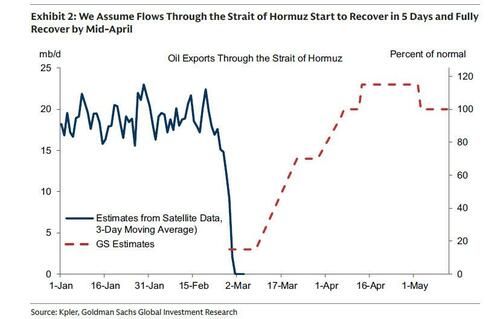 Goldman Expects Strait Of Hormuz Flows To Restart After 5 Days; Fully Normalize in 4 Weeks