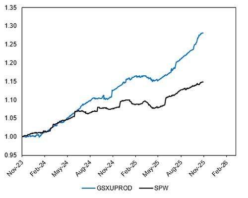 However, as AI makes its way into our everyday life, it’s time to focus on companies that are using AI to increase productivity. Goldman's US AI Productivity Beneficiaries {GSXUPROD Index} is composed of non-tech, non-AI companies that have mentioned specific plans to implement AI into their workflows, leading to lower costs and higher margins.
