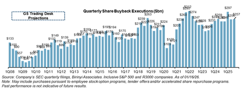 Goldman's flows started to see a slight pickup in activity vs the prior week; last week finished 1.3x vs 2025 YTD ADTV and 0.6x vs 2024 YTD ADTV. Still light volumes given blackout but we expect to see flows increase as open window picks up.