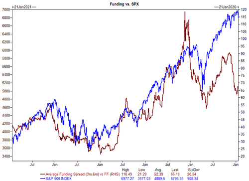 Funding spreads, and the demand for leverage, have bounced off the lows going into the end of last year – this has corresponded with the re-leveraging in the systematic community.