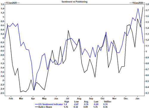 The Goldman Sentiment Indicator is the bank's measure of positioning in US equities (yes, not a measure of sentiment at all) .